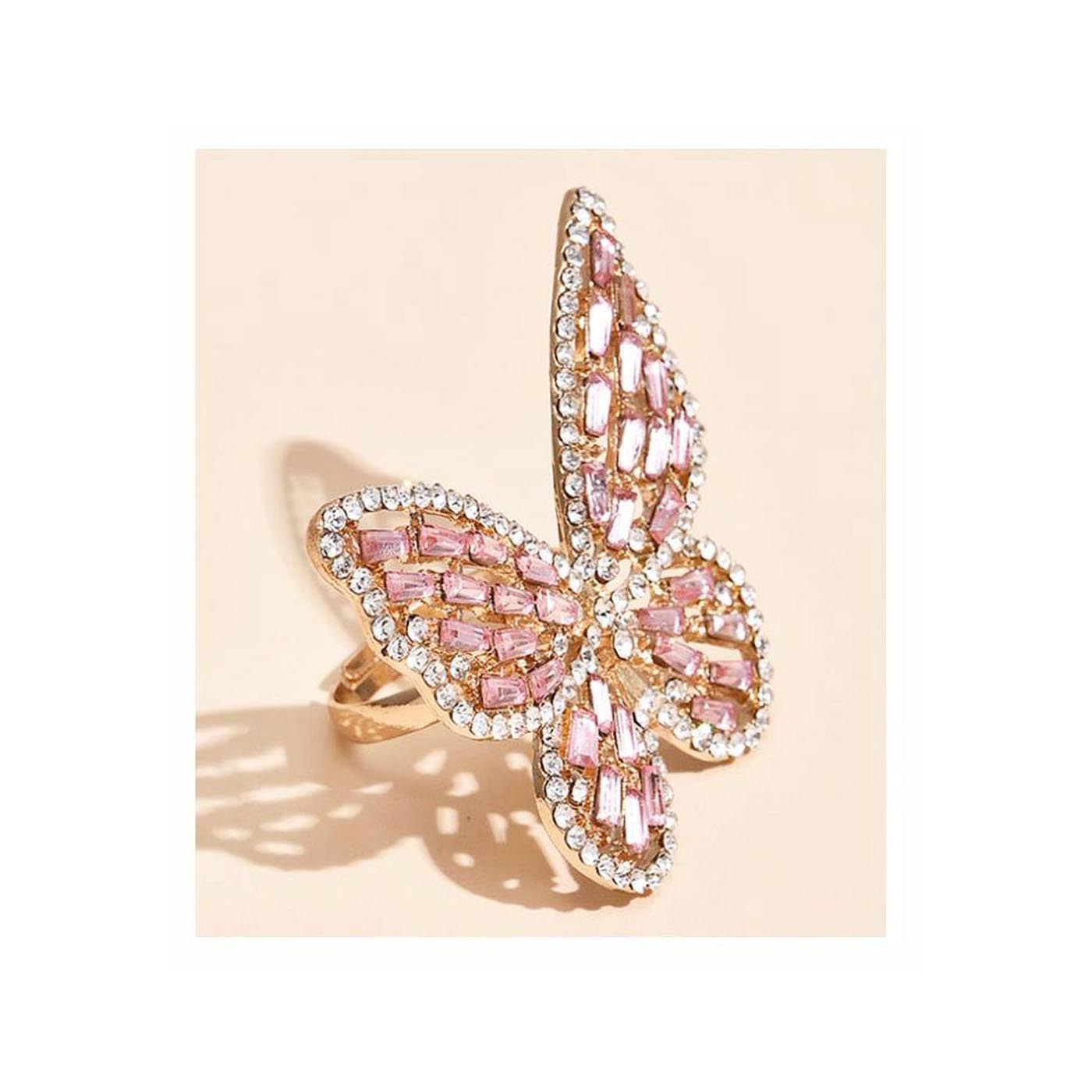 • As shown is an elegant trendy ring highlighted by charm alloy butterfly and crystals.