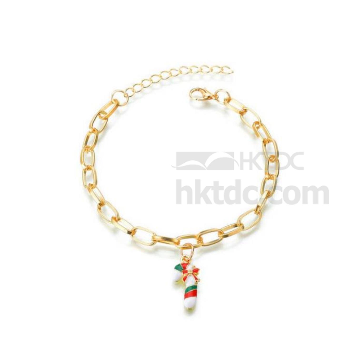 This is piece of delicate golden bracelet highlighted by the enamel-painted candy stick drops to match the festive season.