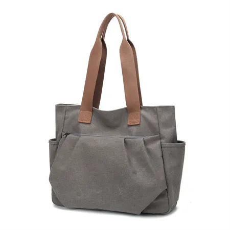 This simple yet stylish tote shoulder bag is made of canvas. It has two side pockets for water bottles and folding umbrellas. Inside, there is a zipped inner pocket, a pocket for your mobile phone and a pocket for your wallet. It has a large capacity and can fit lots of carry-on items. It is an essential shoulder bag for your daily commute.