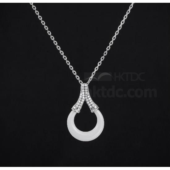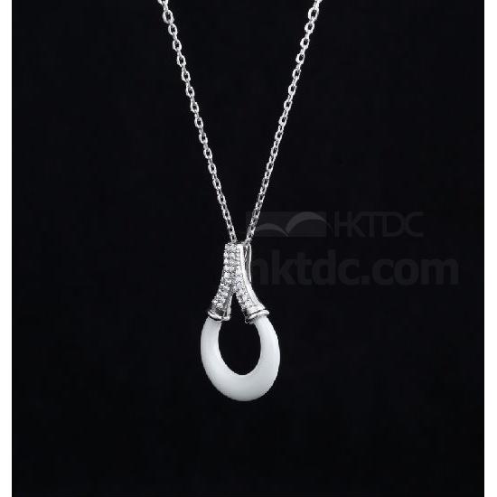 Product name: fashion white ceramic silver pendant with white CZ , excellent quality in Rho plated