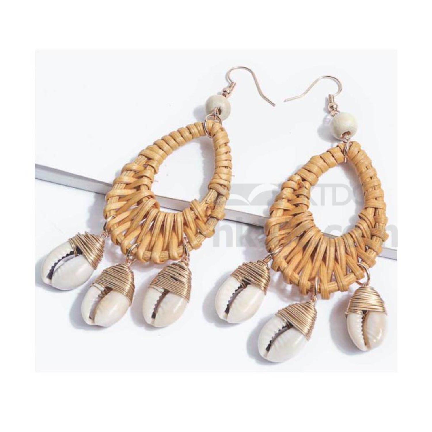• As shown is a high-fashion wooden beads and shell charm drop earring.