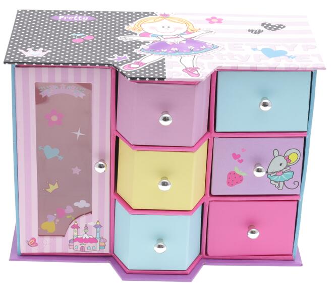 Fashion closet box, size: 23X12.8X17CM, six drawers + single door PVC window, with two transparent plastic hooks.