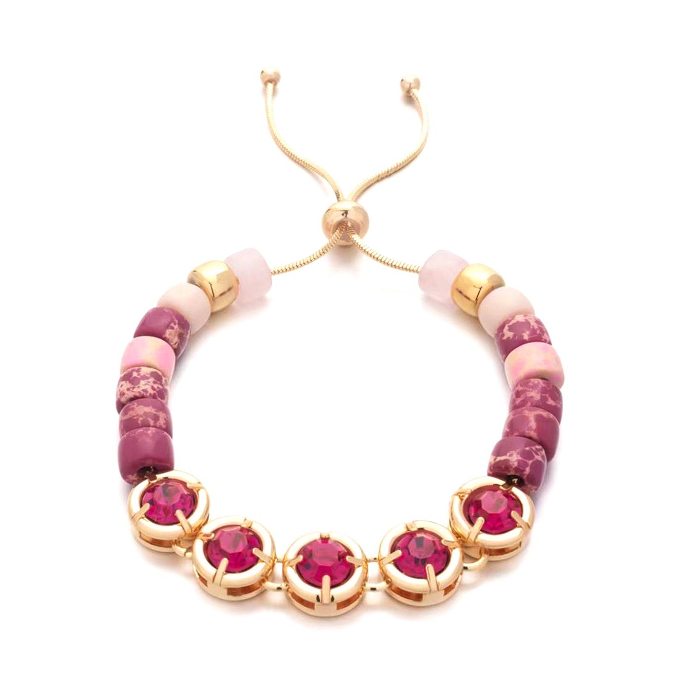 As shown is a high-fashion beads style plastic parts golden plated bracelet with alloy materials.