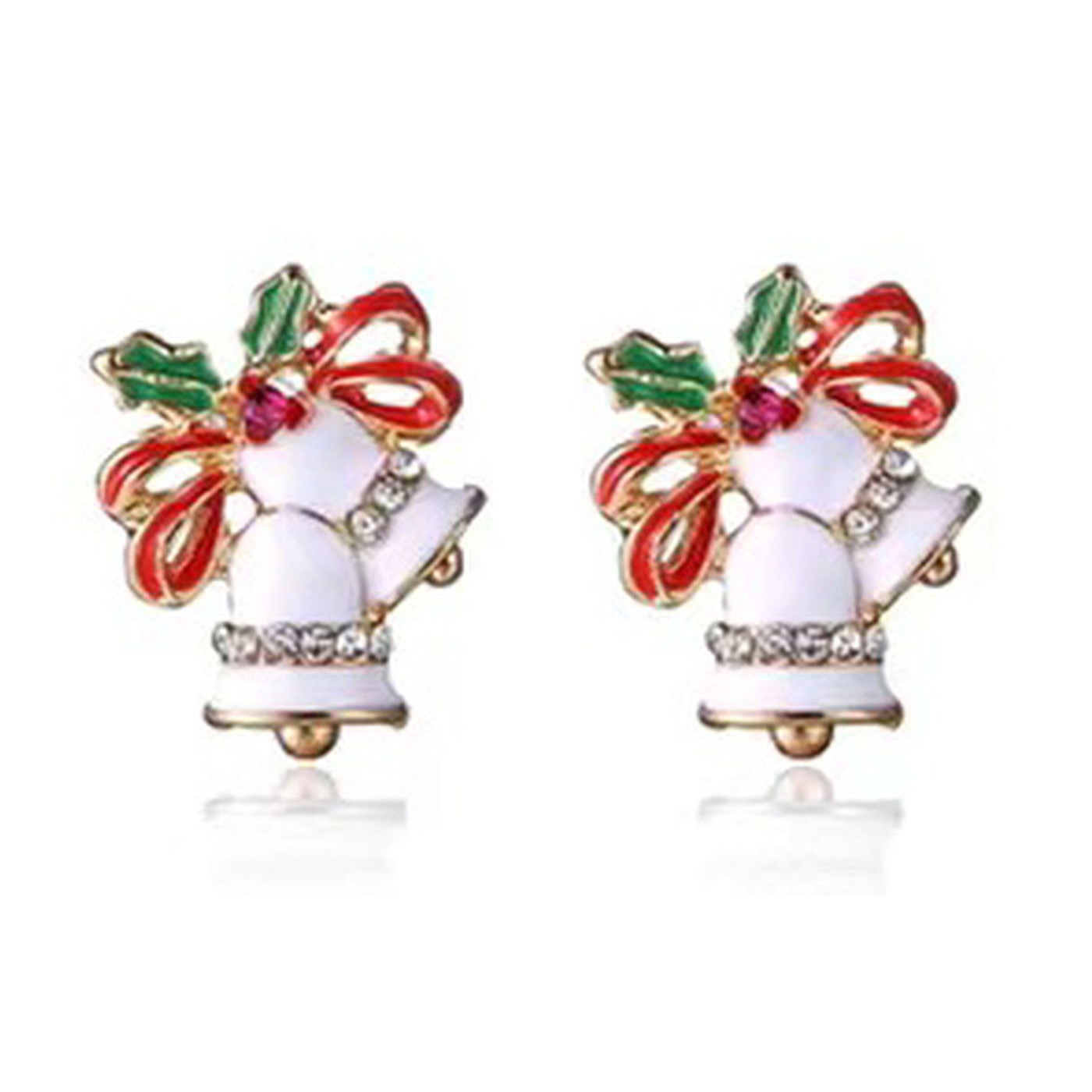 As shown is a high-fashion Christmas bell pattern gold plated alloy parts stud earring.