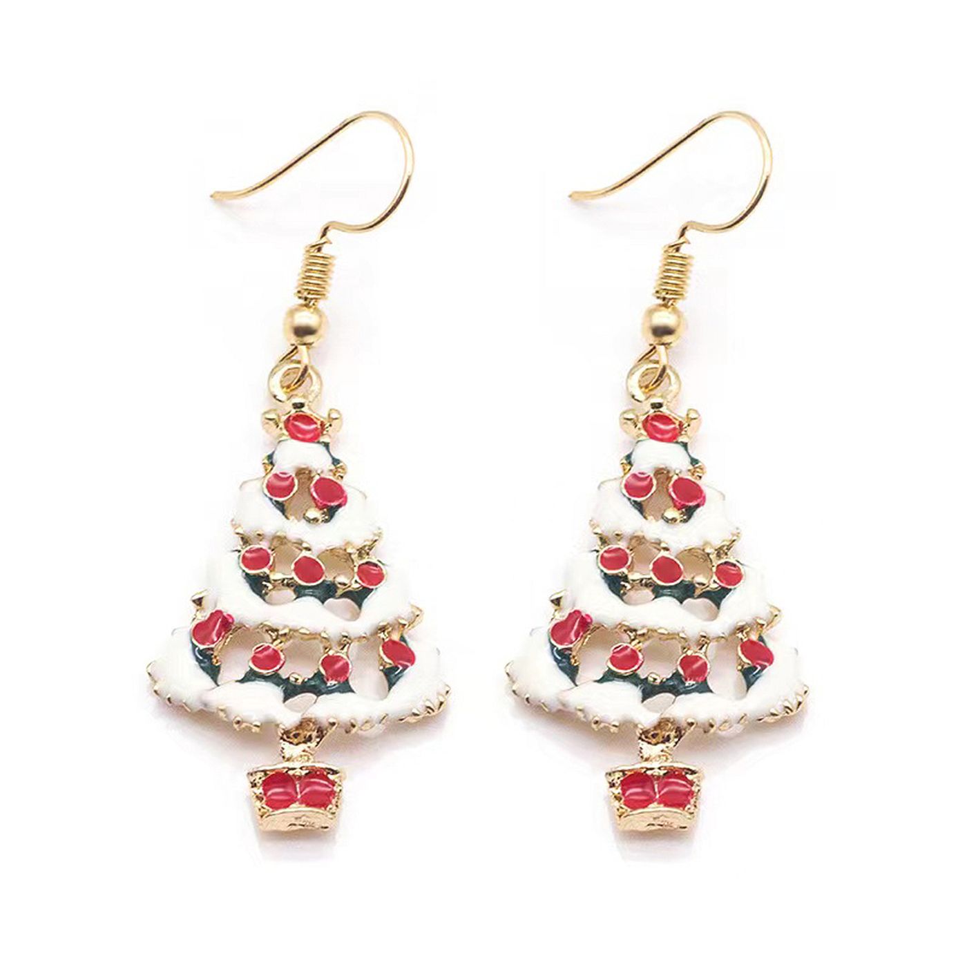 As shown is a high-fashion Christmas tree pattern gold plated alloy parts drop earring.