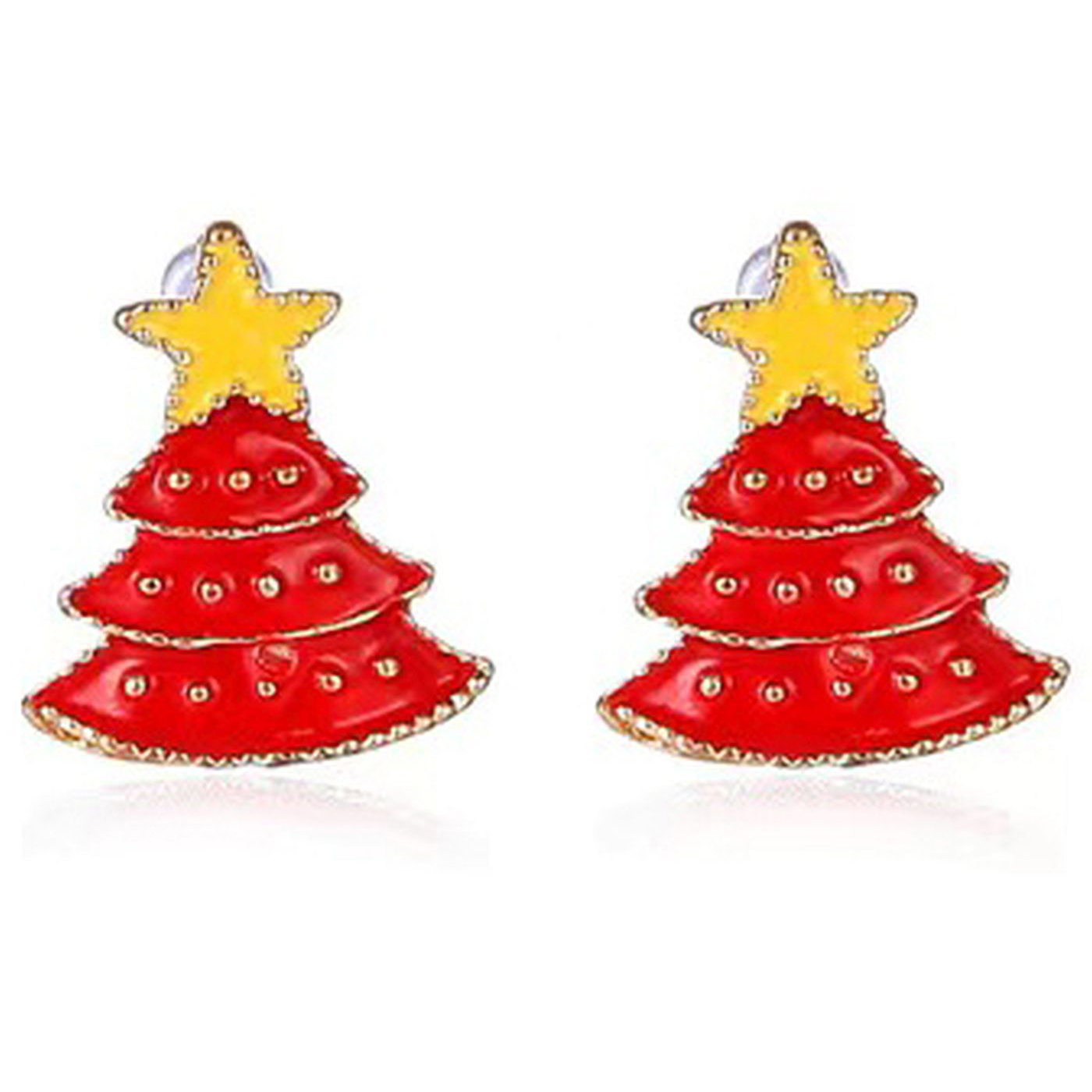 As shown is a high-fashion Christmas tree pattern gold plated alloy parts stud earring.