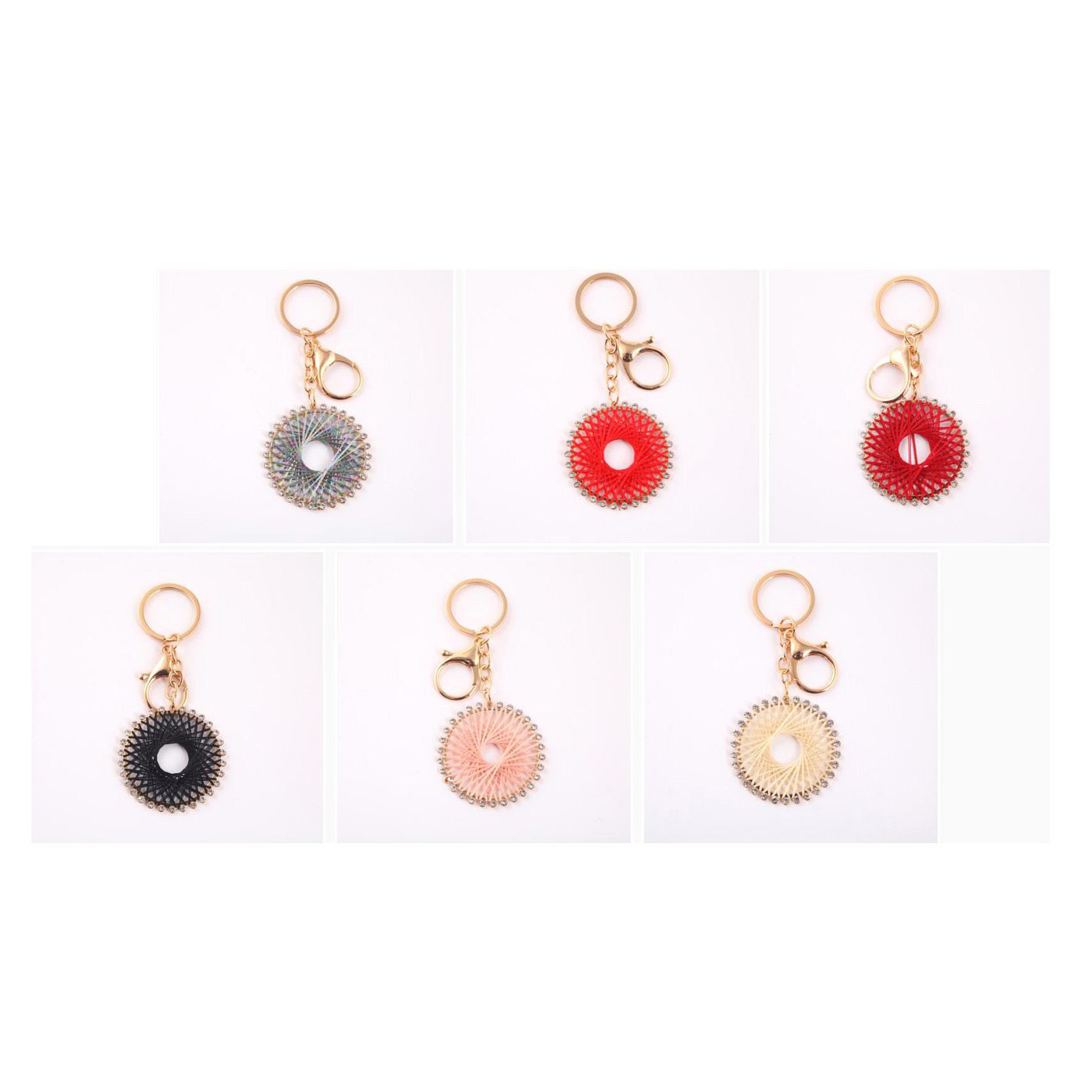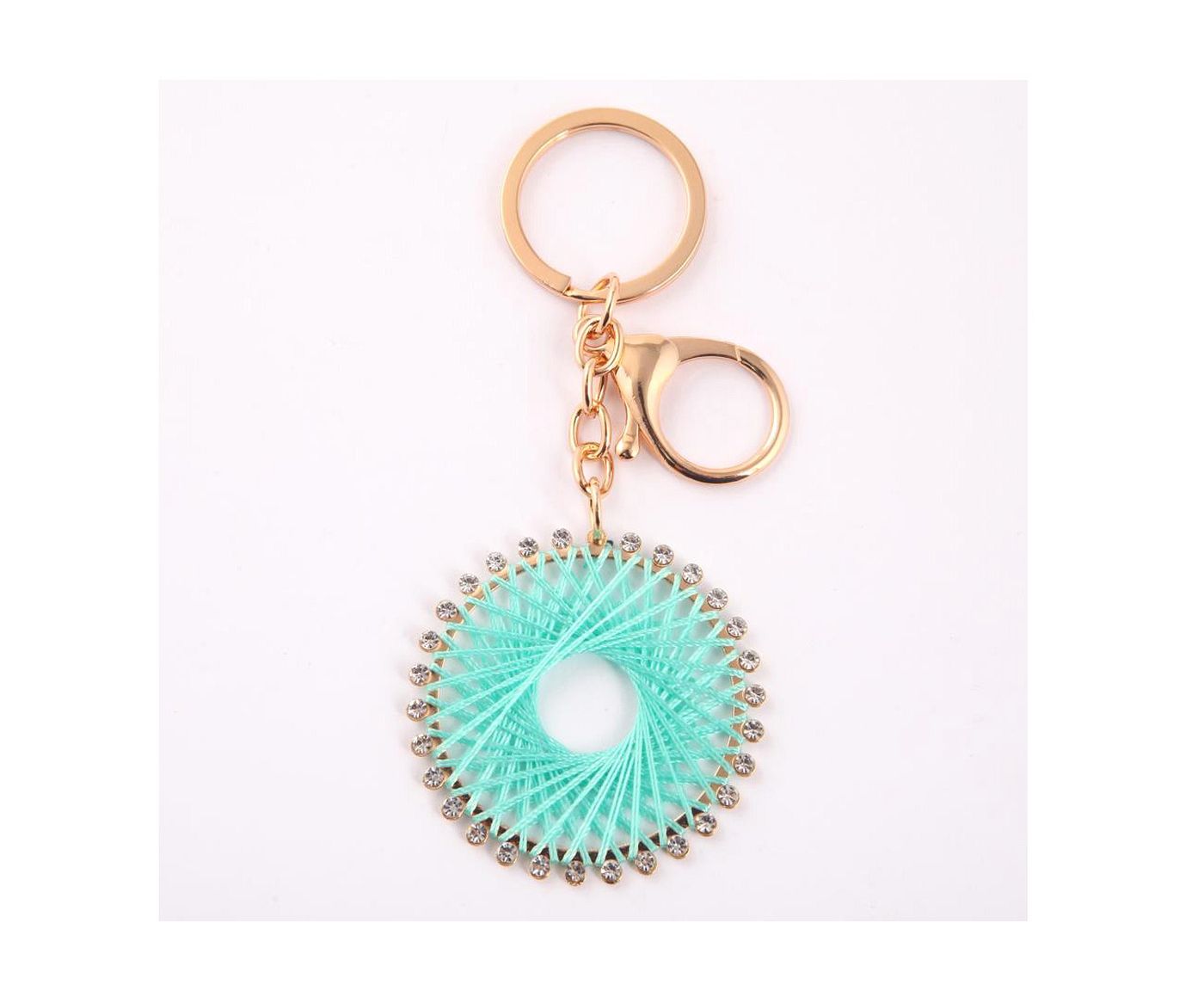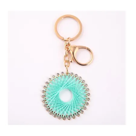 As shown is a high-fashion circle thread pattern crystals gold plated key chain.