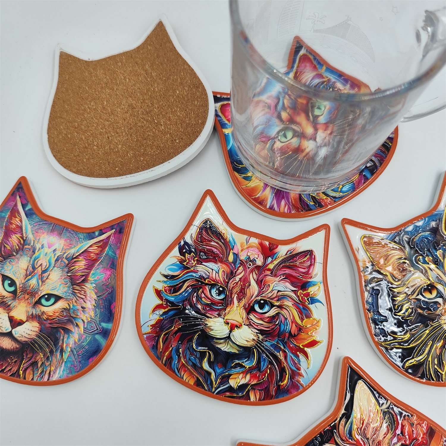 Fashionable Customizable Modern Cat Shape Coasters Personalized Water-Absorbent Ceramic Coasters for Home Cork Back