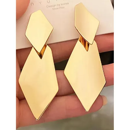 As shown is a high-fashion diamond style golden plated alloy parts drop earring.