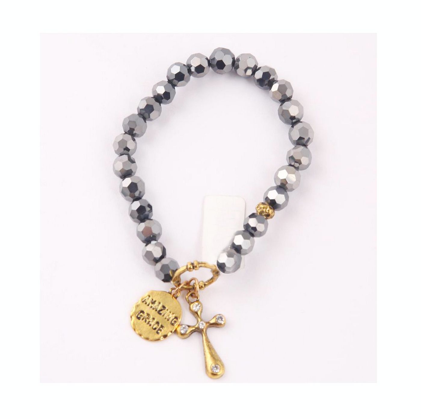 As shown is a high-fashion jewelry cross style plastic bead golden plated metal alloy bracelet.