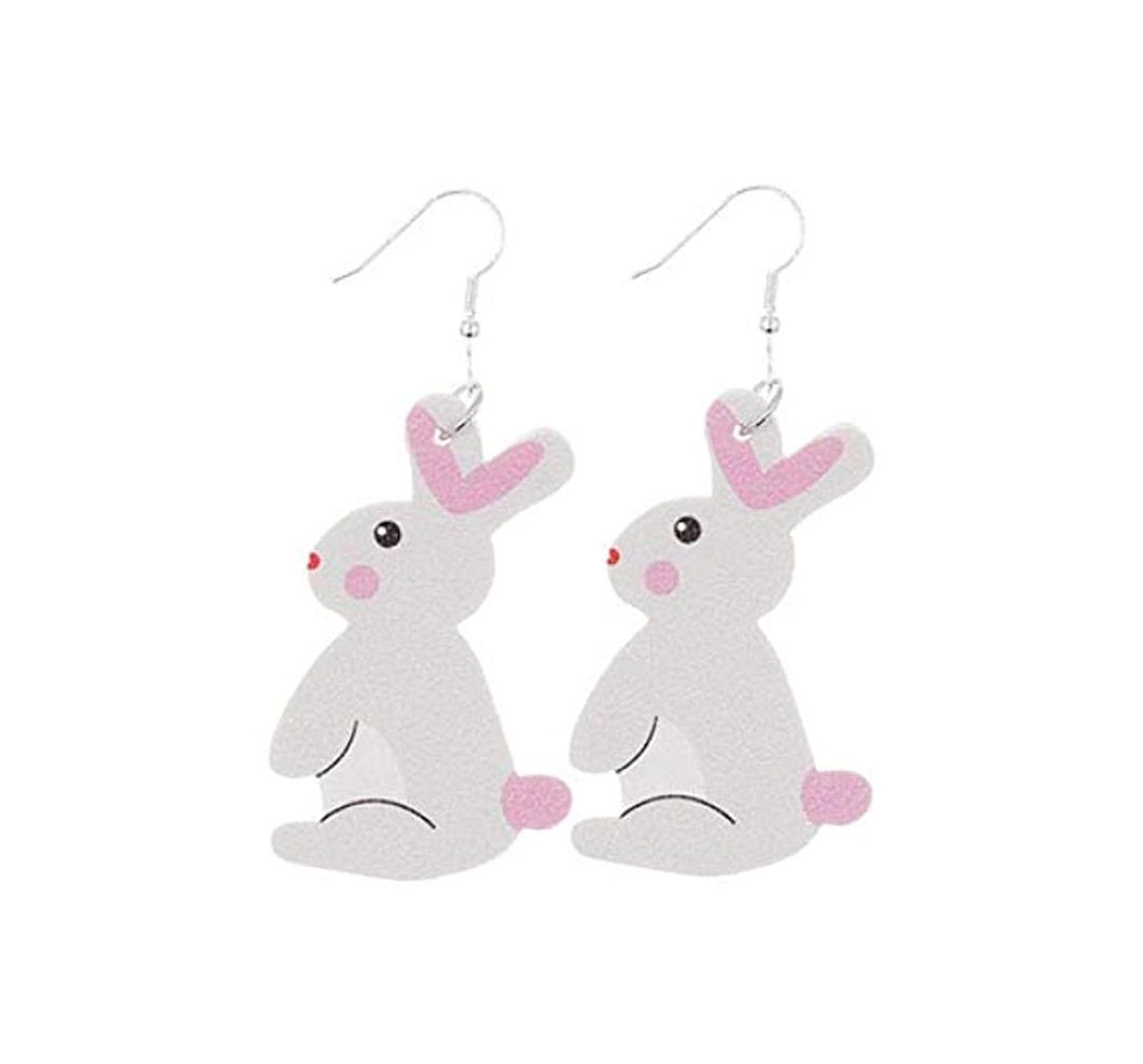 As shown is a high-fashion rabbit style acrylic parts drop earring.