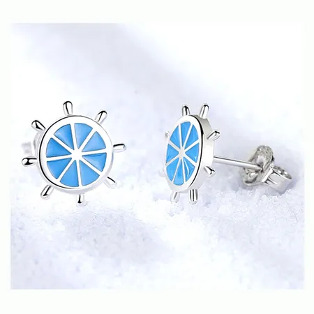 As shown is a high-fashion ship steering wheel style silver plated alloy parts stud earring.