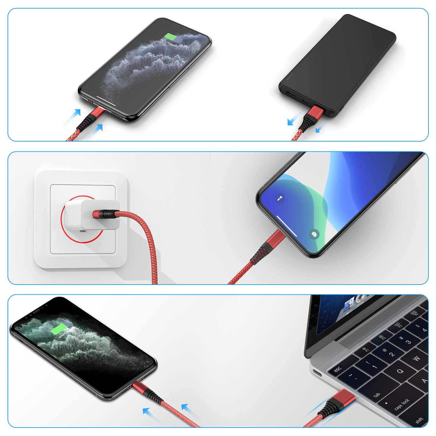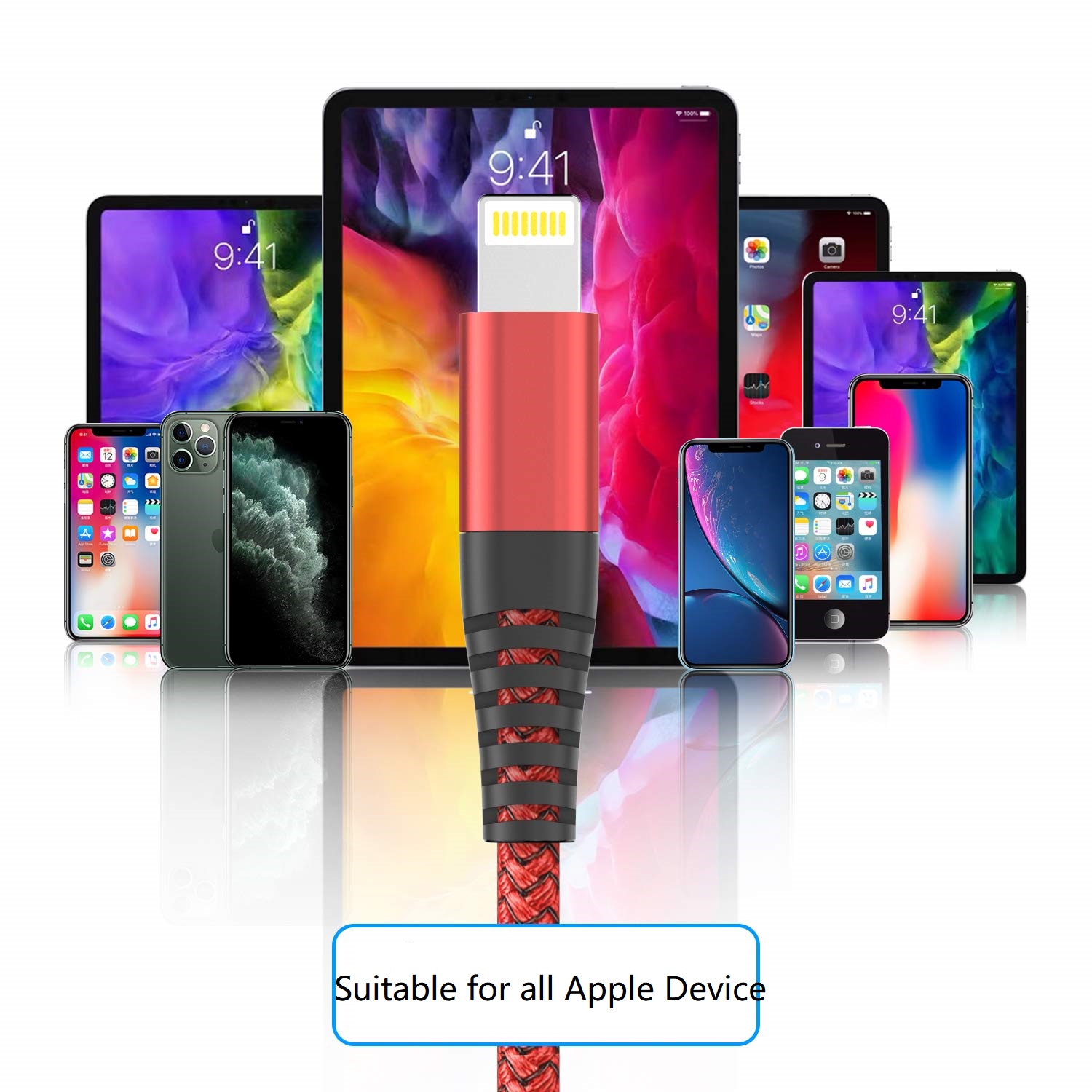 【Strong Compatibility】 This nylon braided iPhone charger cable is complete compatible with iPhone 11 / 11Pro / 11Pro Max / Xs / XR / X / 8 Plus / 8 / 7 Plus / 7 / 6s Plus / 6s / 6 Plus / 6 / 5s / 5c / 5, iPad Pro / iPad Air / Air 2 / iPad mini / mini 2 / mini 4 / iPad 4th gen, iPod Touch / iPod Nano 7th gen as well as the latest iOS system.