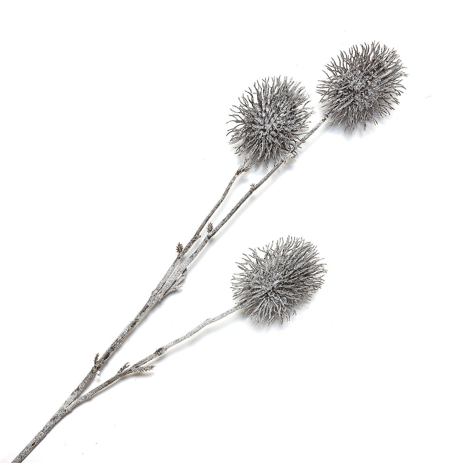 Bring texture and definition to winter floral arrangements with this faux rambutan. This replica features three ranbutans with their signature sphere silhouette and soft spikes for life-like appeal. The decorative piece is finally completed with a snow-flocked-like effect for a wintry update. Add body and variety to classic bouquets with this spiky piece.