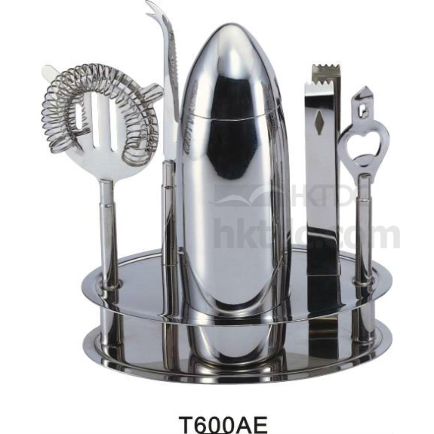 0.7L shaker(5.2 x 22.5cm) Ice tong (18 x 1.9cm) Cheese knife (22x1.4cm) Bottle opener (18 x 3.7cm) Hawthorn strainer (19.5 x 9.2cm)
