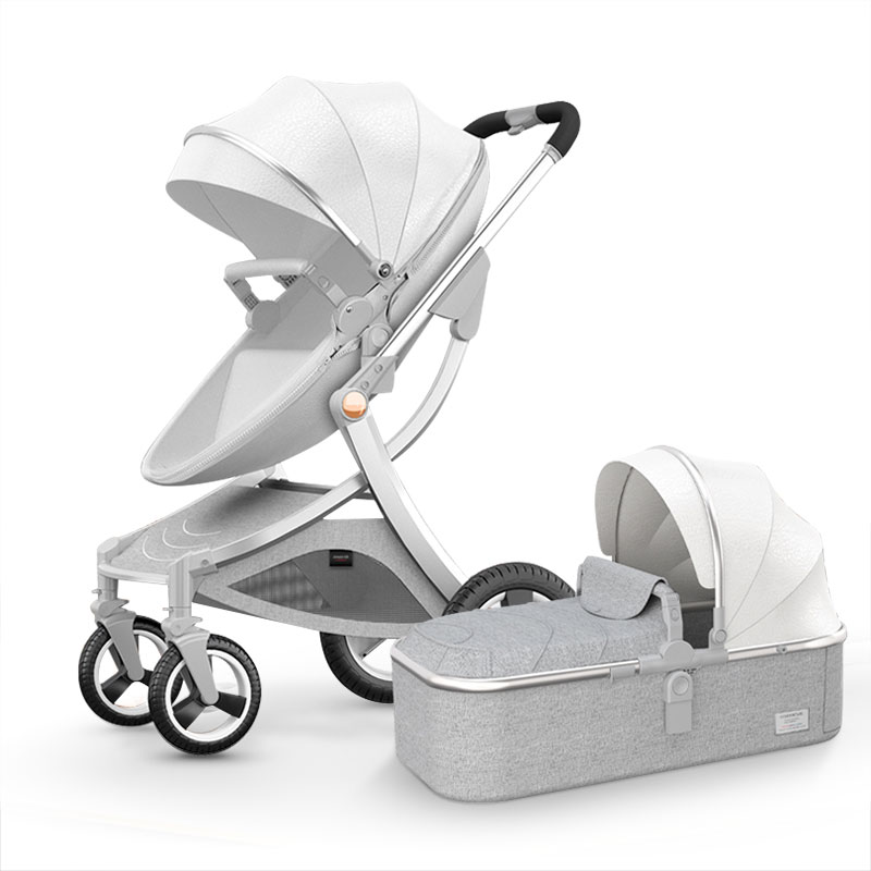 Favorable baby stroller 3 in 1 eggshell baby trolley with aluminum frame and PU leather