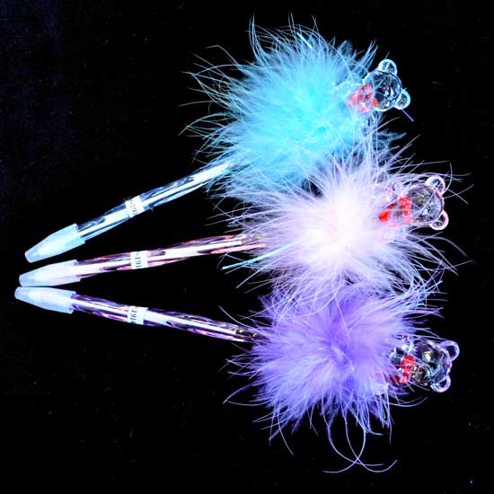 With an outstanding appearance, the featured pens make beautiful additions to your stationery collection. There is a crystal bear at the tip of the pen and the tip is decorated by feathers. The pens come with a lid.