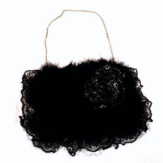 This featured fashion accessory is a ladies' handbag that comes with an extremely nice metal bag strap. This exquisite handbag is lavishly decorated by feathers. It is the definitive fashion accessory for casual occasions.