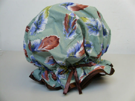 • Feather pattern printed cotton laminated with PVC shower cap.