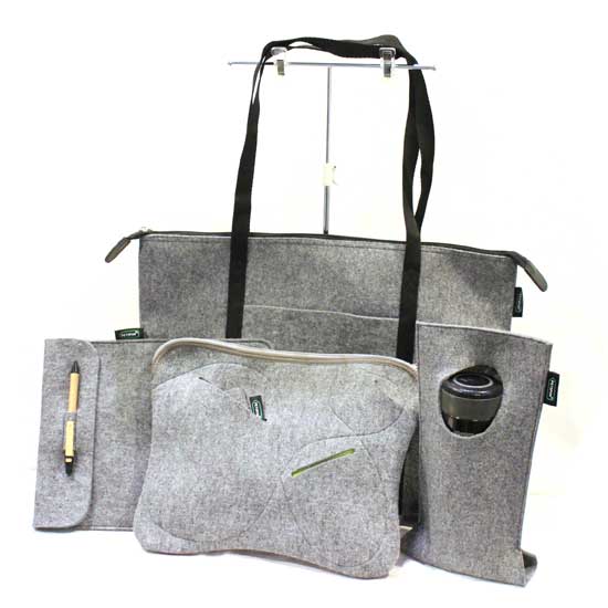 The displayed felt bags feature a light gray exterior, matching your daily outfits with ease. Made of PET-spun recycle material, the stylish bags guarantee sturdy construction and exceptional durability. They offer a wide range of functions and suit different needs.