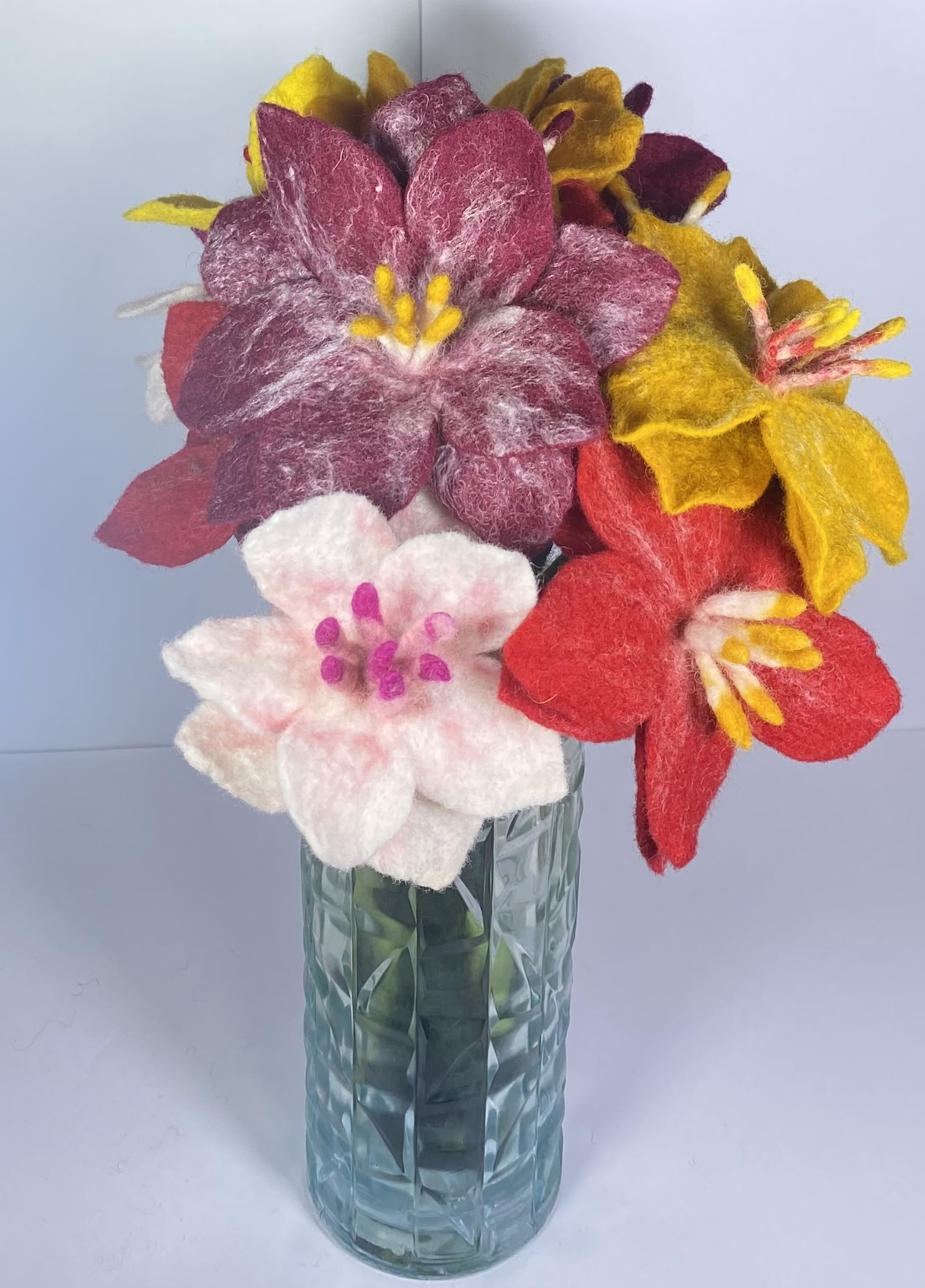 Handmade Felt Flowers made from 100% New Zealand Wool. Great for Home decorations and Gifts. Our felt flowers can be made in various colours, in different shapes and sizes.