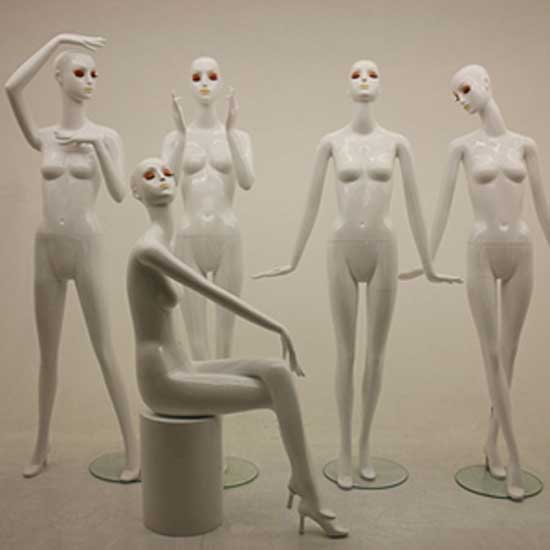 This is a mannequin designed in a standard female figure. The mannequin comes with movable hands and a support base for legs. The toughened glass structure can ensure long-lasting beauty for display.