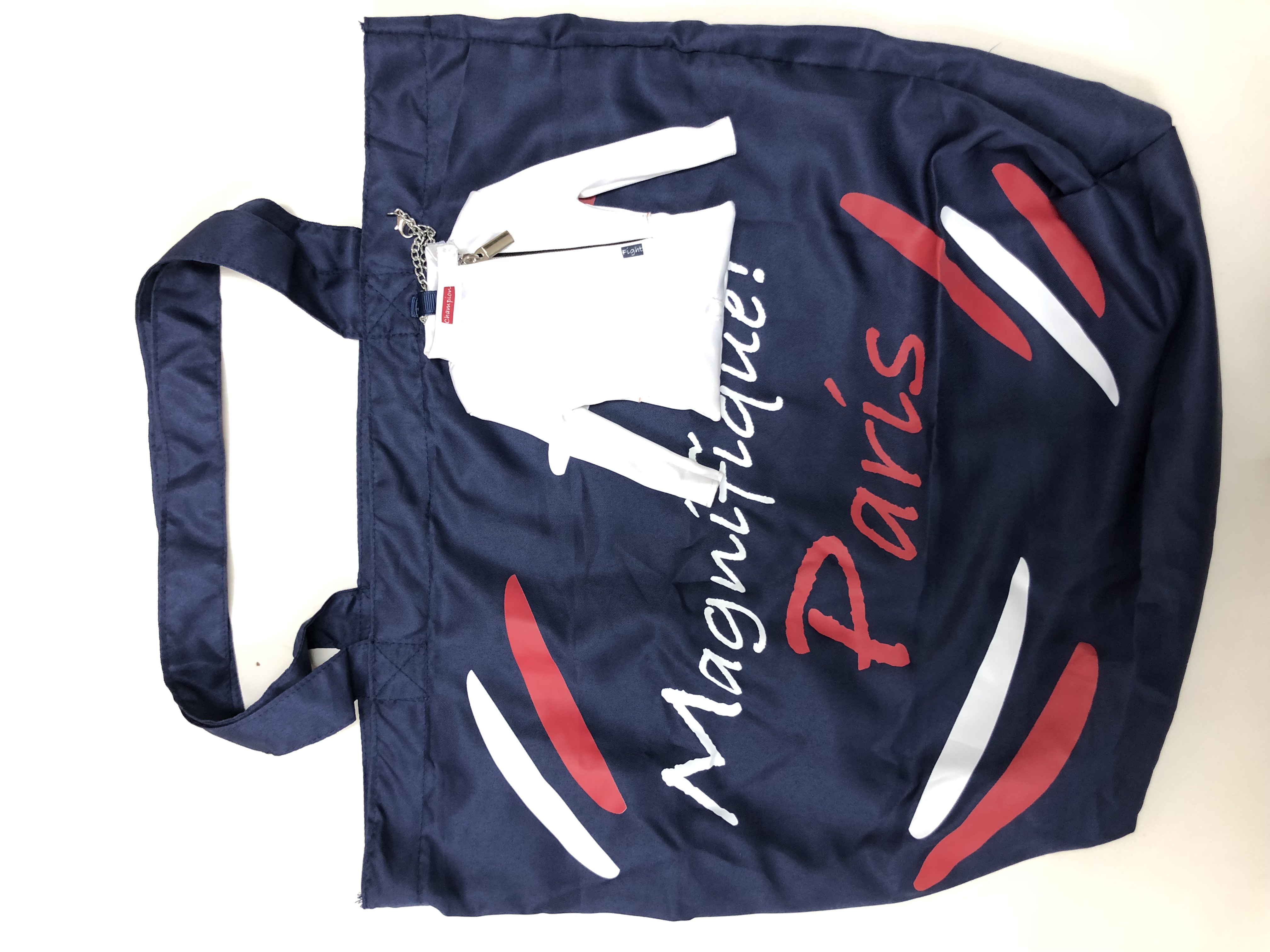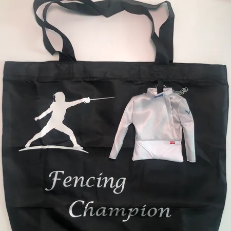 Fencing coat like pouch with retractable polyester tote inside for casual shopping in style