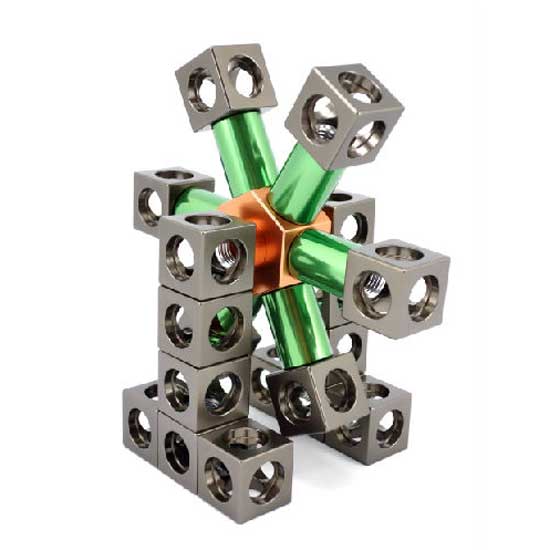 This distinctive ferris wheel is formed by cutout cubes and colored tubes. The metallic appearance exudes a contemporary touch effortlessly. This novel ferris wheel is an ideal art display for homes and offices.