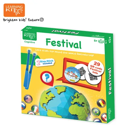Let's start our round the world festival trip! Learning the origin and experience of different festivals. Use your slap-stick to pick up the festival cards as soon as you match the country card.