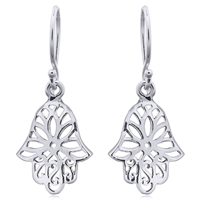 Figures Lotus Silver Hamsa Hand Dangle Earrings