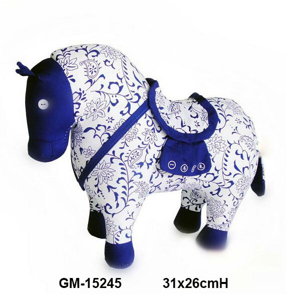 Fine Cotton blue & white porcelain printed horse, white PP cotton stuffing.  Have an aura of happiness.