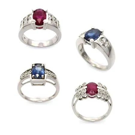 - Materials available: 8-24K gold, various gemstones, diamonds.