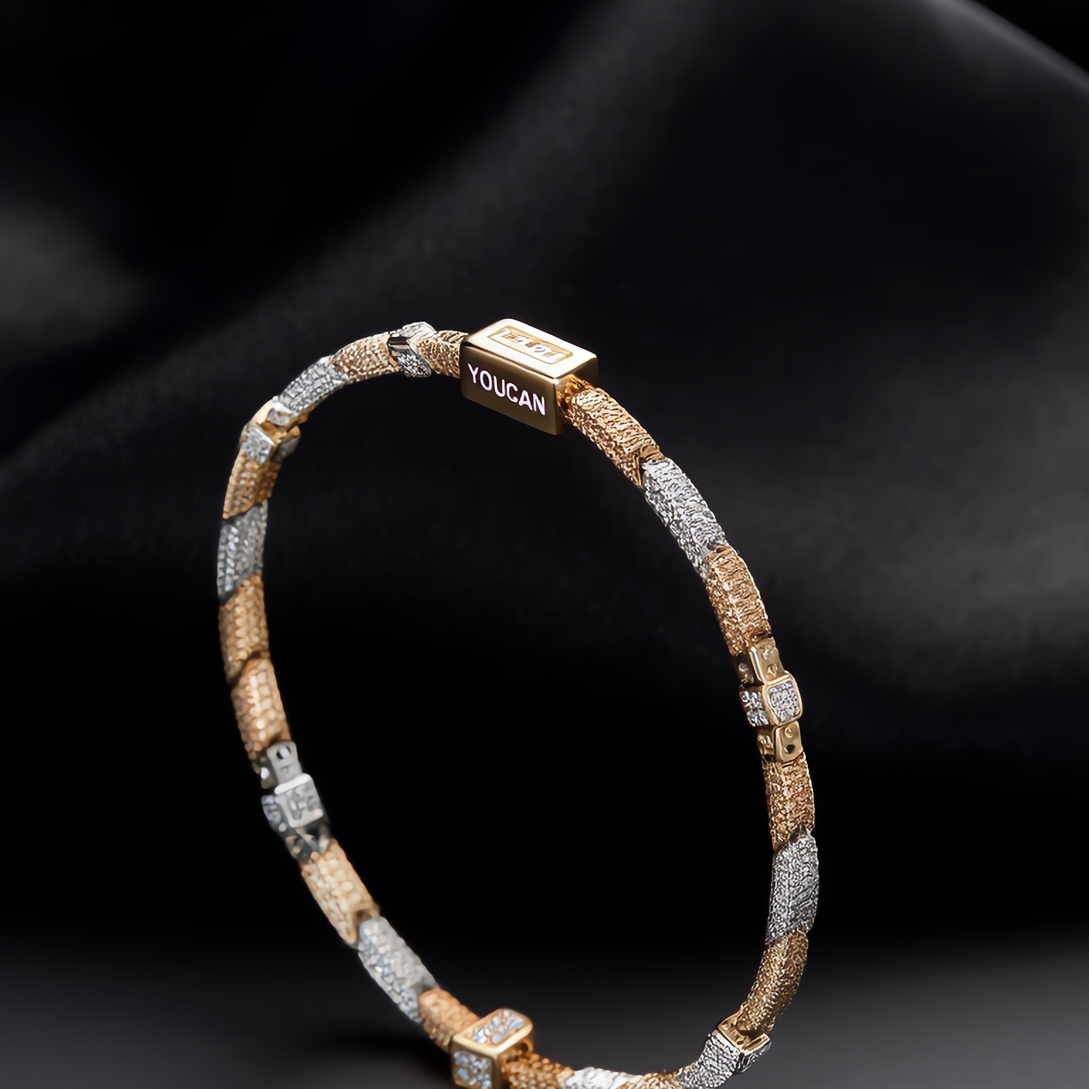 18k tricolor gold interwoven bracelet (symbolizing a diverse self), when worn, diamonds rotate and twinkle with the wrist, symbolizing low-key blooming and cultivating diamond fashion and atmospheric style