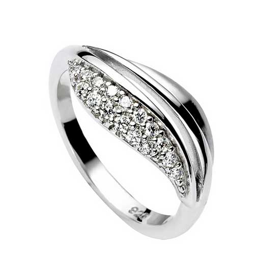 Displayed is a finger ring coming with a sleek and lustrous band. The sparkling decorations on it capture your attention. This finger ring makes an ideal accessory for any grand occasions.