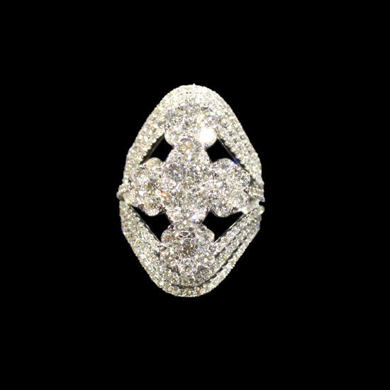 This finger ring comes with a fashionable and luxurious design. It is crafted with dazzling diamonds on the 18K white gold setting for added elegance. This stunning ring surely is a great item for adding some glamor to your slender finger.