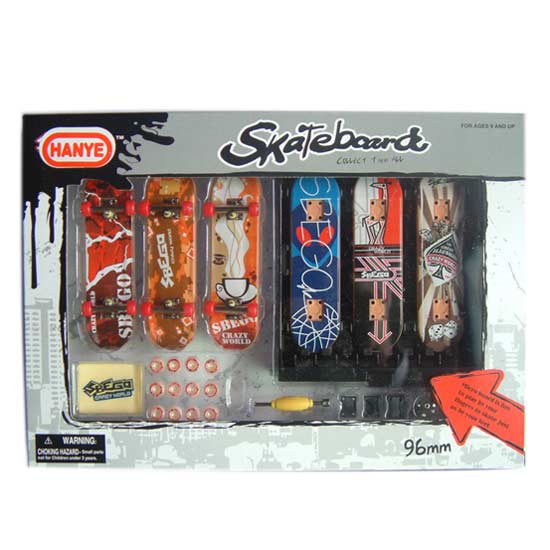 This finger skateboard set includes six skateboards in different styles. Accessories like wheels, boards and screwdrivers are also featured, offering enjoyment in assembling skateboards. The set lets you play skateboards at home.