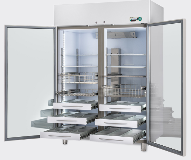 - ECT-F Touch TFT display, 7", with Acoustic alarm, Temp recording (10 yrs), Integrated Web Server, USB, SD & GSM SIM port, Advance defrost, Ambient LED Light, High / Low Temp, Power, Door, Faulty alarm.