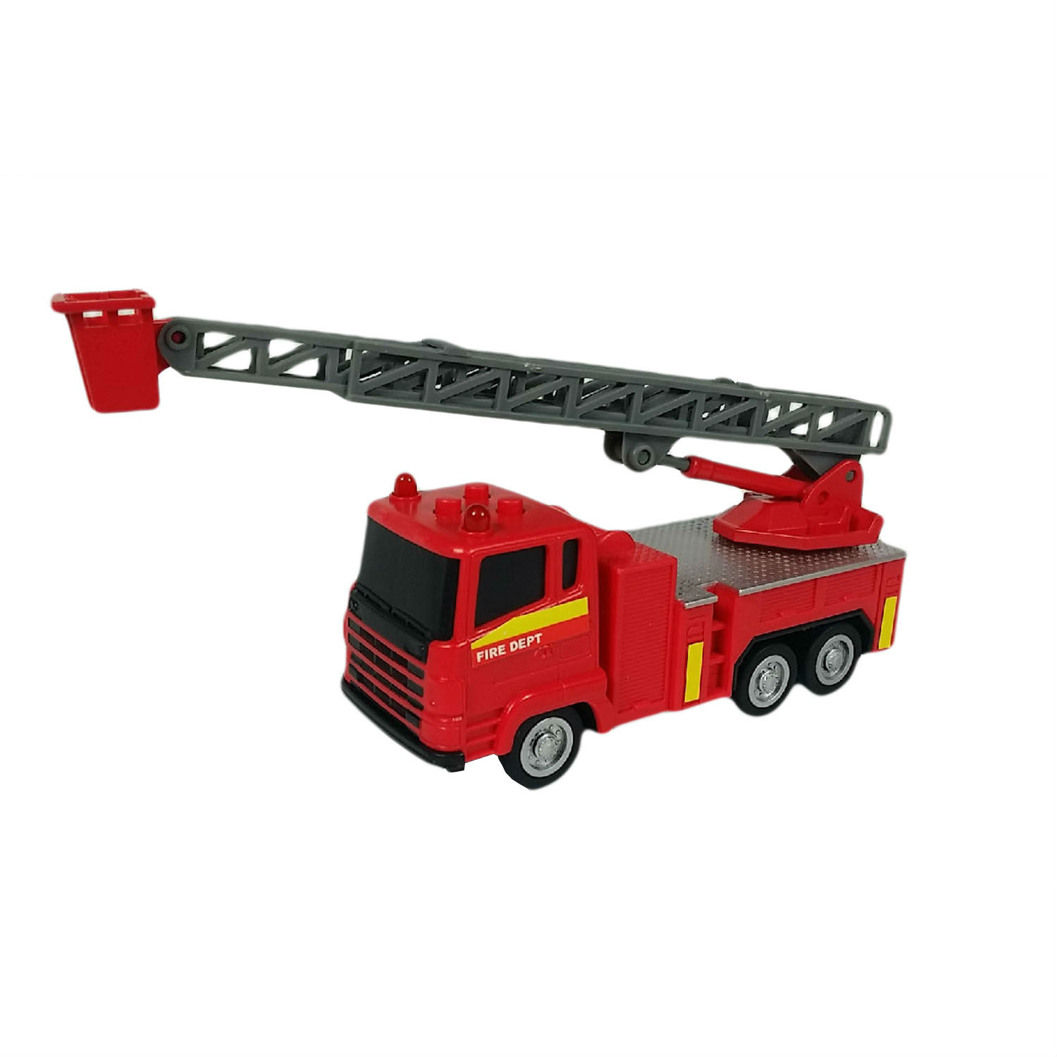This simple and compact toy fire truck is a fantastic companion for toddlers. The vehicle highlights all basic details including extendable ladder with platform, above-the-cab siren, window and six wheels. Emitting lively sound and catchy light, this vehicle stimulates toddlers’ sensory experience.