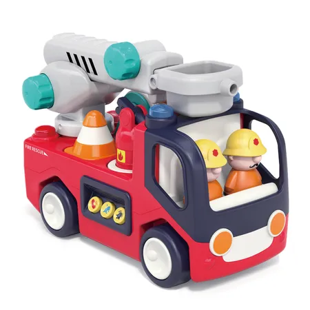 The fire engine toy is a delightful play vehicle designed for young children, offering an engaging and educational experience. Crafted with vibrant colors and a charming, cute design, it captures attention while promoting imaginative play. This toy car offers two play modes, each delivering unique sound and light effects that create an immersive and dynamic experience. An ideal gift for kids seeking excitement and educational fun.
