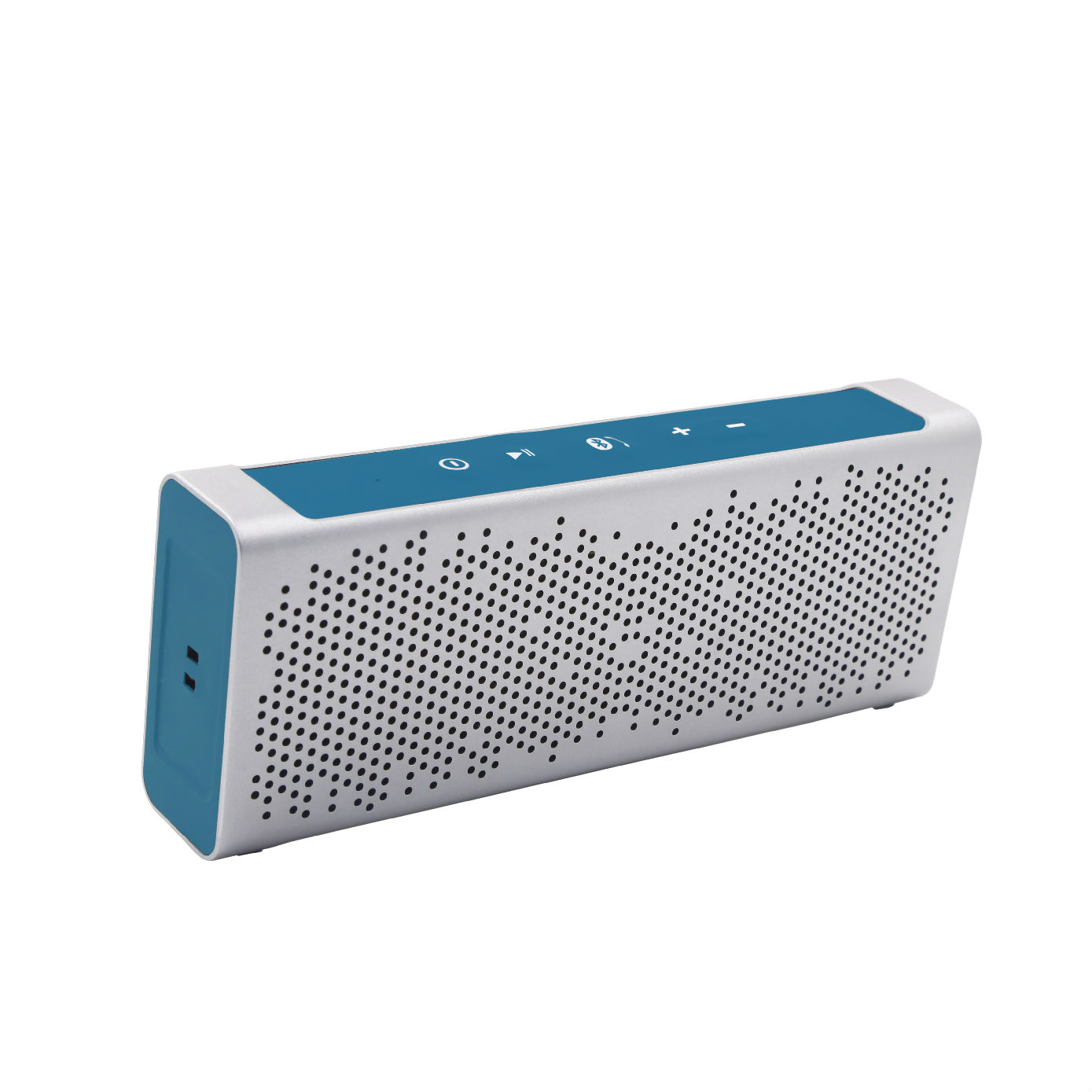 This wireless stereo speaker sports a sleek and compact construction crafted with a control panel across the top. Engineered with stereo sound, it gives dynamic depths to your favorite music with powerful bass. This wireless stereo speaker doubles as a hands-free speakerphone for incoming calls.