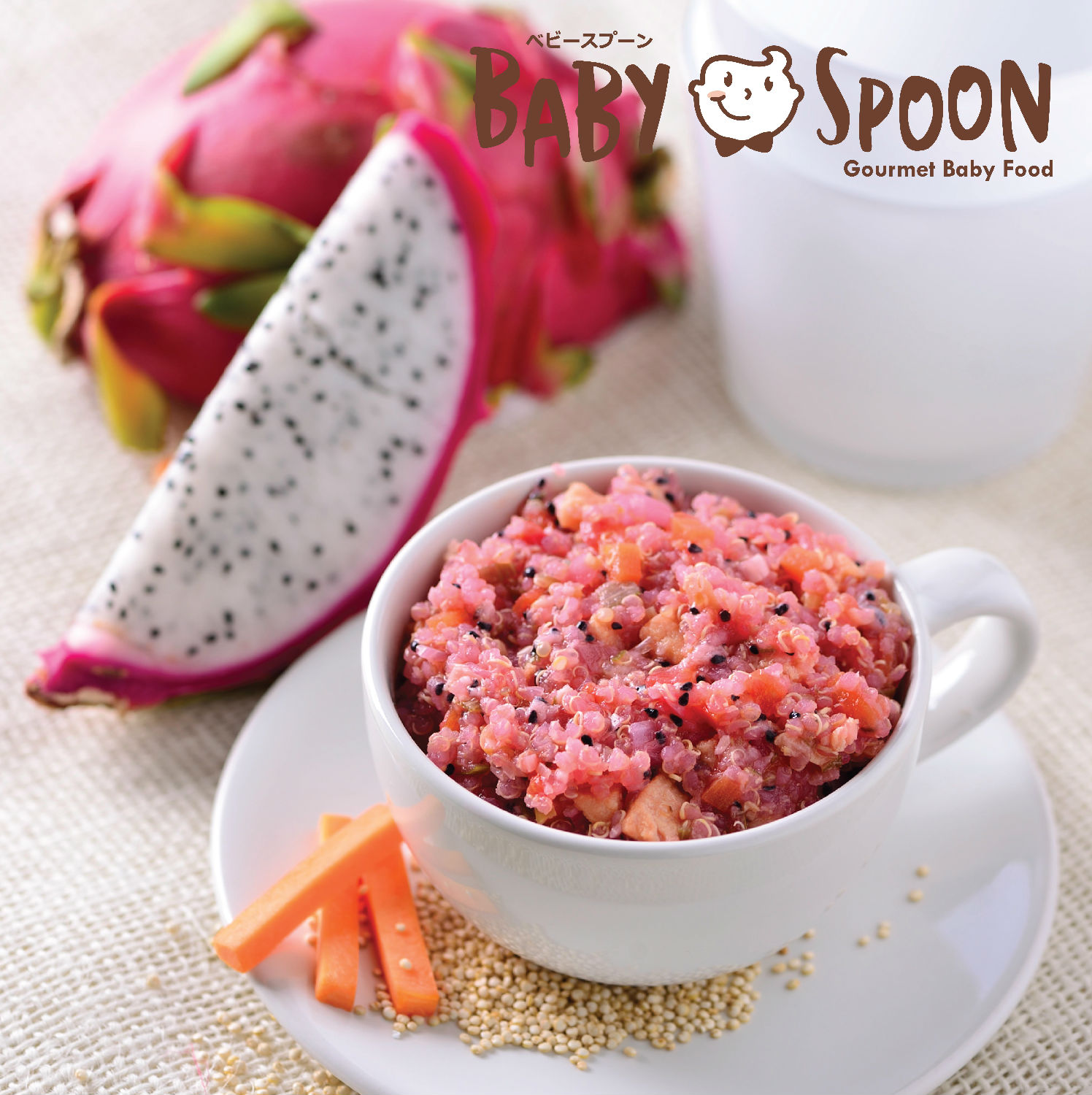 • A pretty pink blend of freshwater fish with tomato, carrot, red dragon fruit, quinoa and roasted sesame seed.