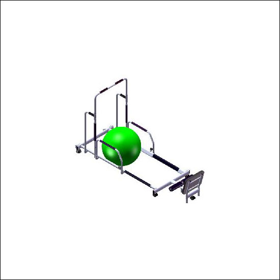 • A fitness ball exerciser with a sturdy black and white frame