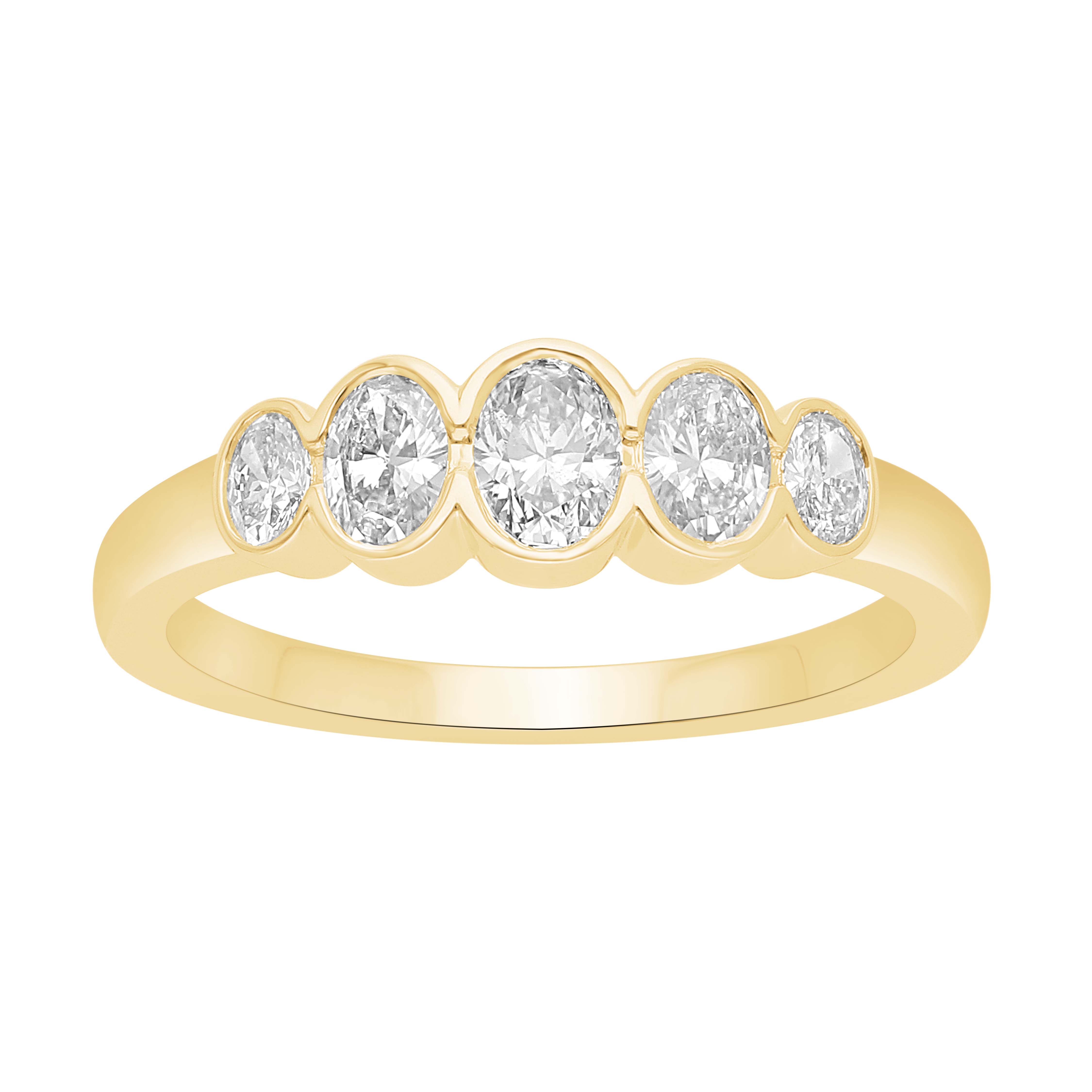A graceful row of oval-cut diamonds sits in smooth, polished yellow gold bezels, creating a refined silhouette that blends classic style with modern sophistication.