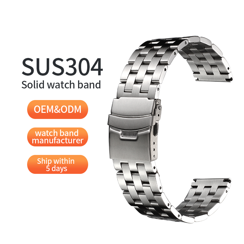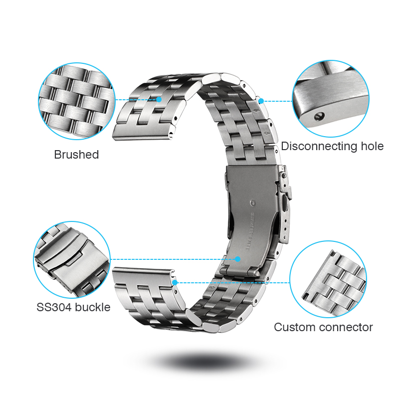 Five bead Satin brushed stainless steel watch band 26mm watch strap