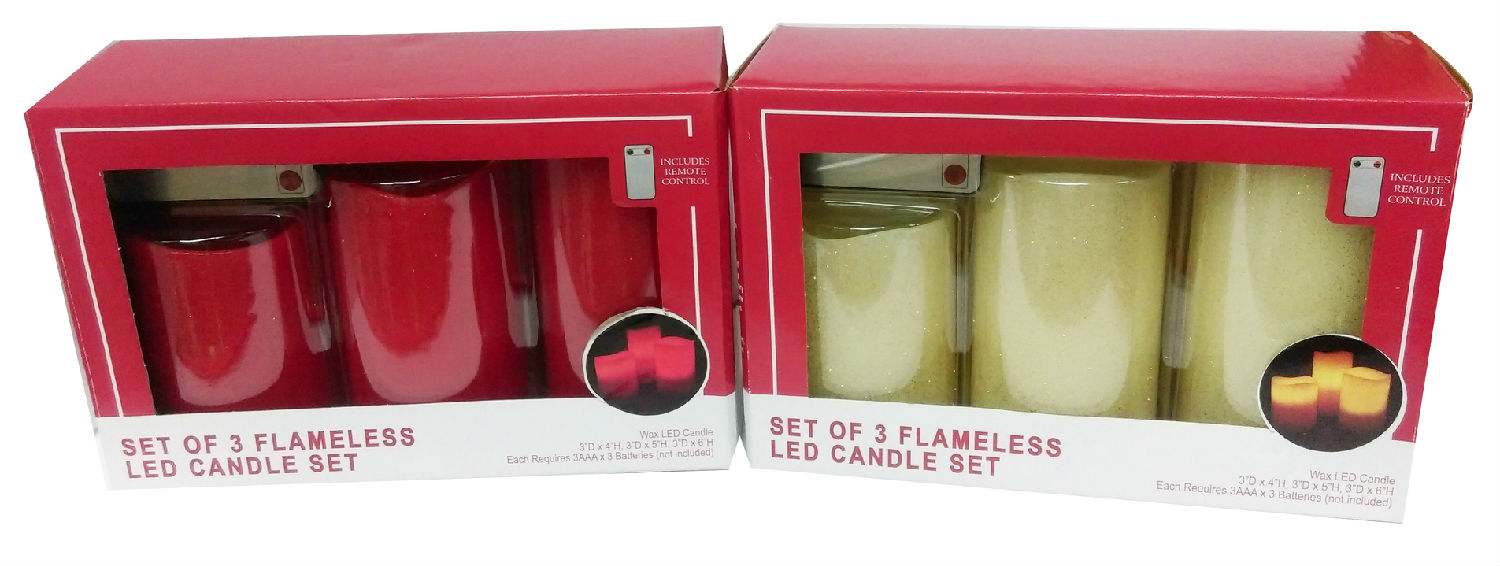 • Flameless LED wax pillar set of 3x4, 3x5 and 3x6 with remote