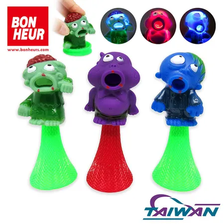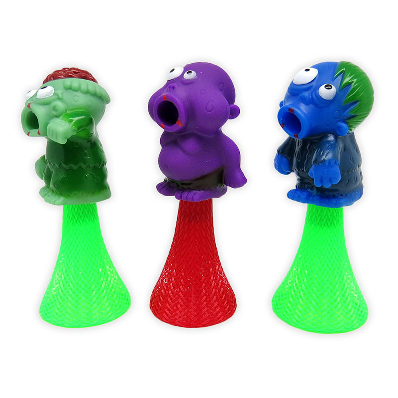 The Flash Pop Up Zombie Hopping toy is a thrilling and entertaining playtime companion for kids of all ages. With its vibrant colors and realistic zombie design, this toy is sure to capture the attention and imagination of little ones. Simply press down on the toy's head and watch as it pops up and hops around, providing endless fun and excitement.