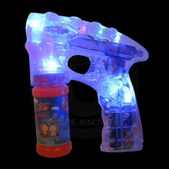 This flashing bubble gun comes in a unique shape that catches children's attention. The flashing LED module is colorful and attractive. This flashing bubble gun produces bubbles from the spout after the trigger is pulled.