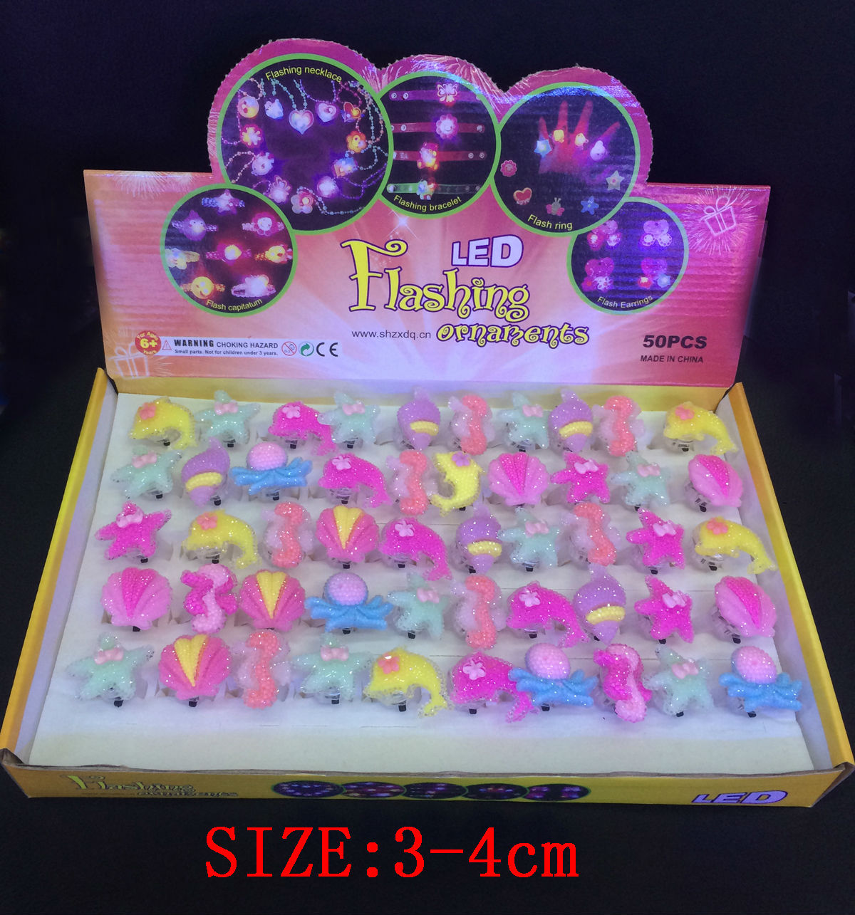 This set consists of 50 pieces led flashy bumpy rings of various colors.