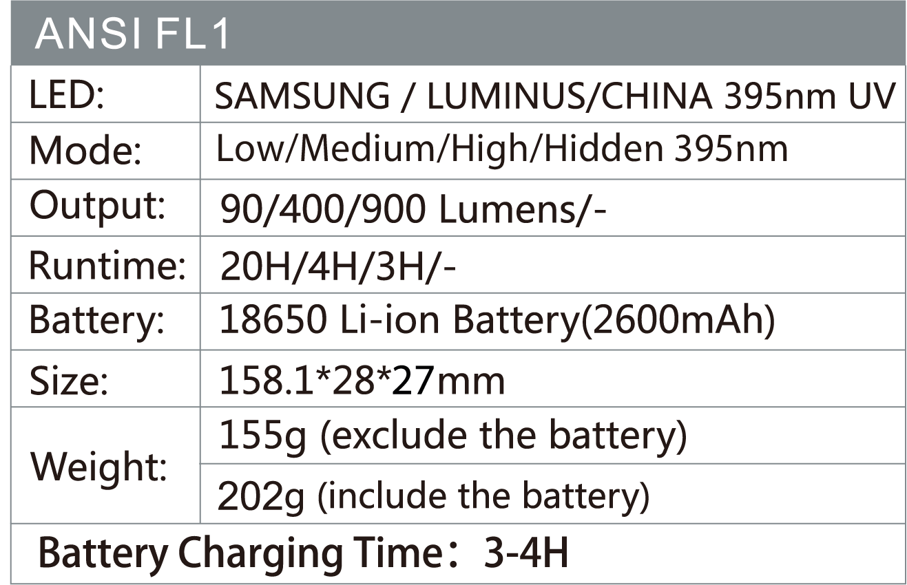 1*18650 USB Rechargeable L-torch flashlight with UV 900 Lumens