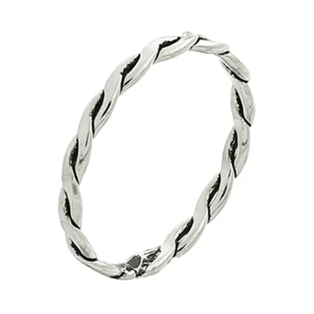 Flat Braided 925 Sterling Silver Stackable Midi Ring